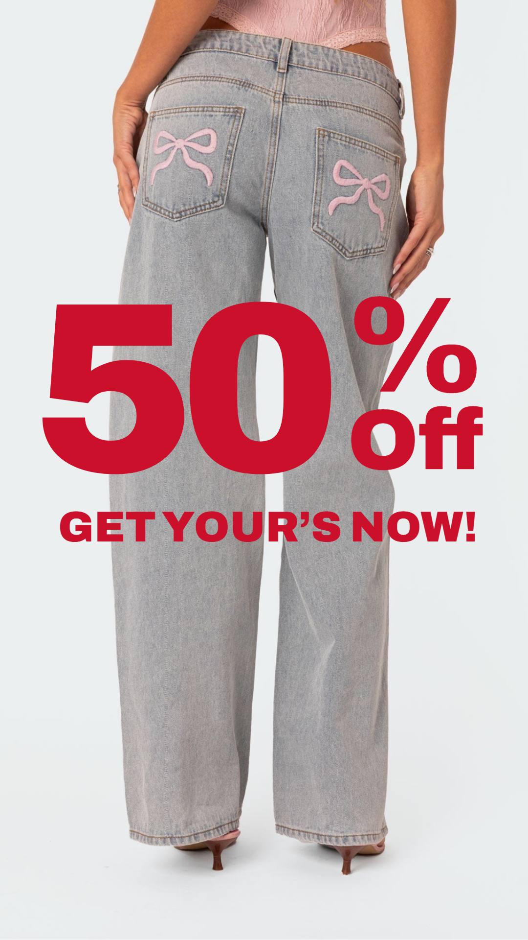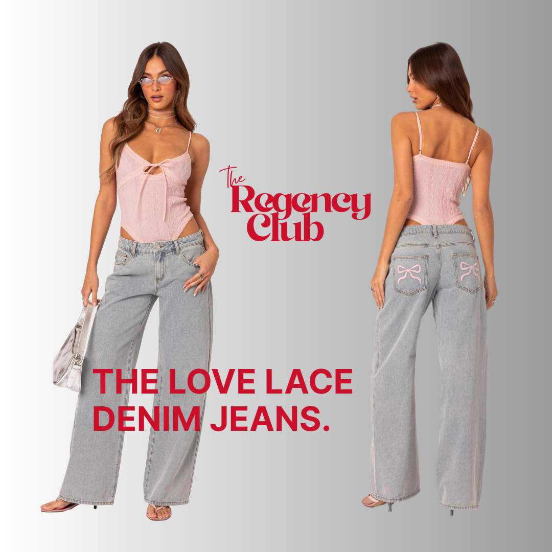 Cute, comfy, and a little bit flirty — The Love Lace Denim Jeans bring soft-girl charm to your everyday fits. With pink embroidered bows on the back pockets and a relaxed, flattering silhouette, these jeans make casual look captivating.